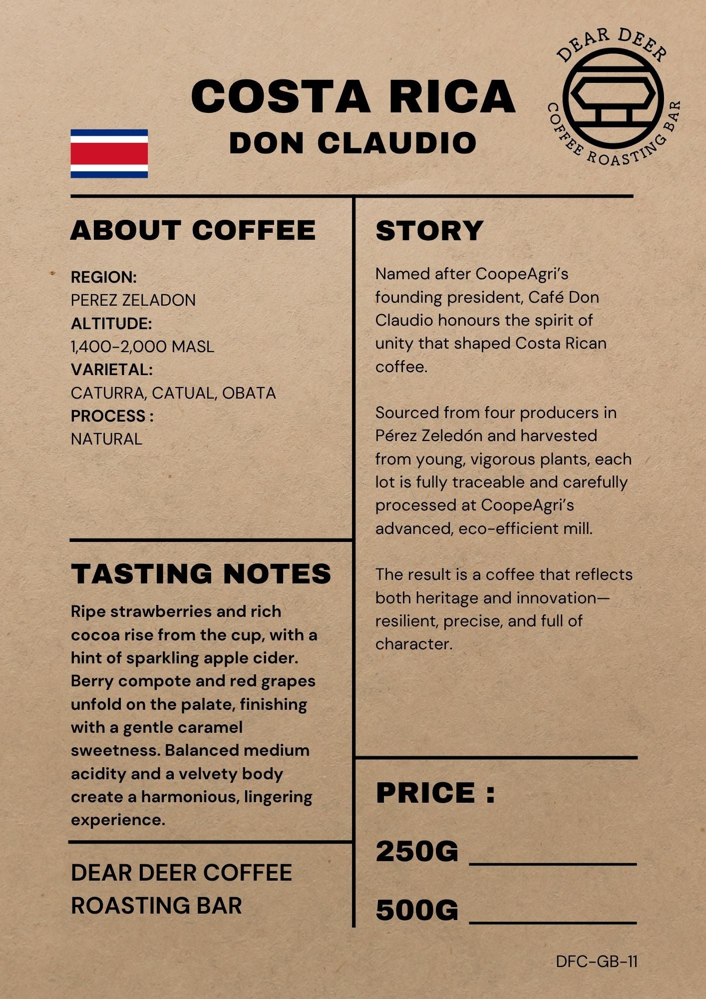 Named after CoopeAgri’s founding president, Café Don Claudio honours the spirit of unity that shaped Costa Rican coffee.